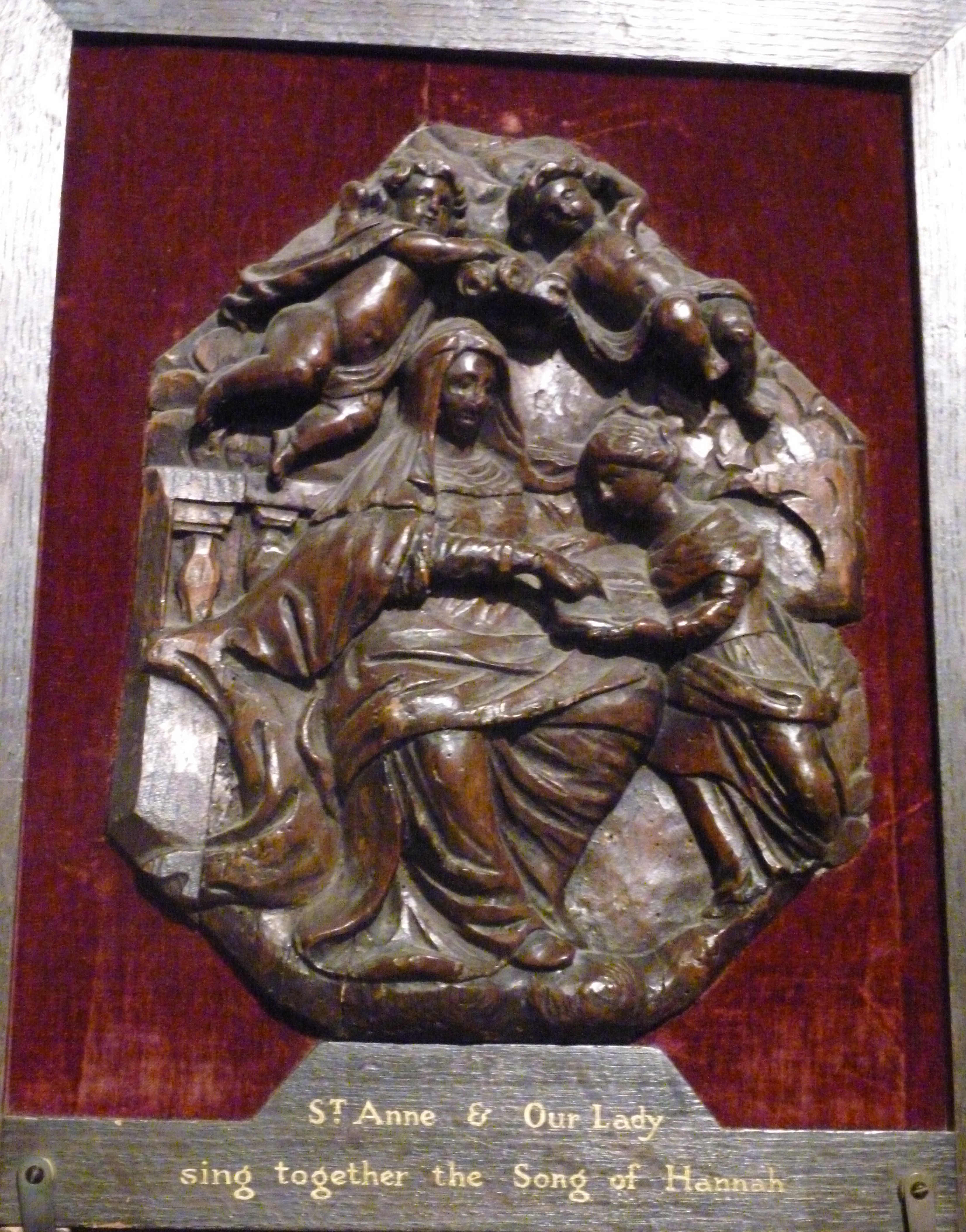 This plaque (click below) and 15th century statue of St Anna teaching Our Lady may be found in York Minster.