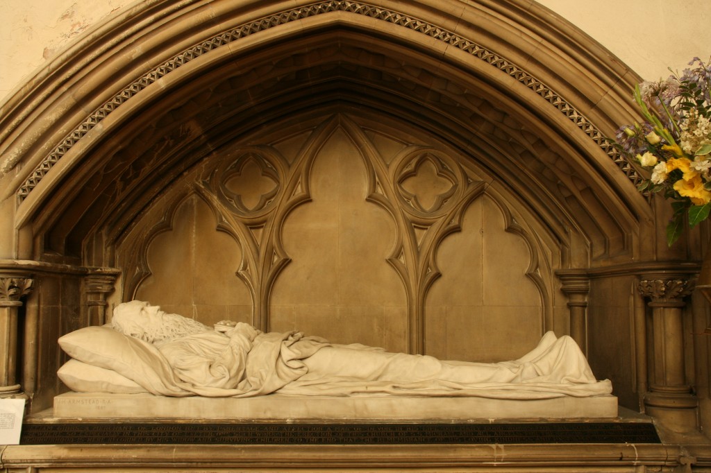 This monument by H. Armstead, R.A. is an outstanding life size effigy of William Gibbs of Tyntesfield given to St Michael’s by his wife Matilda Blanche. Armstead is famous for the carvings around the base of the Albert Memorial in Hyde Park, London.