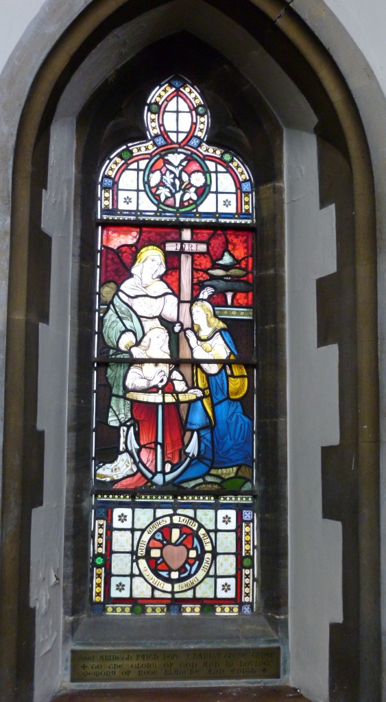 These windows depict “Faith, Hope & Charity” in memory of 3 sisters, Mary, Blanche & Edith, and “Well done, thou good and faithful servant” in memory of a late Victorian Curate.