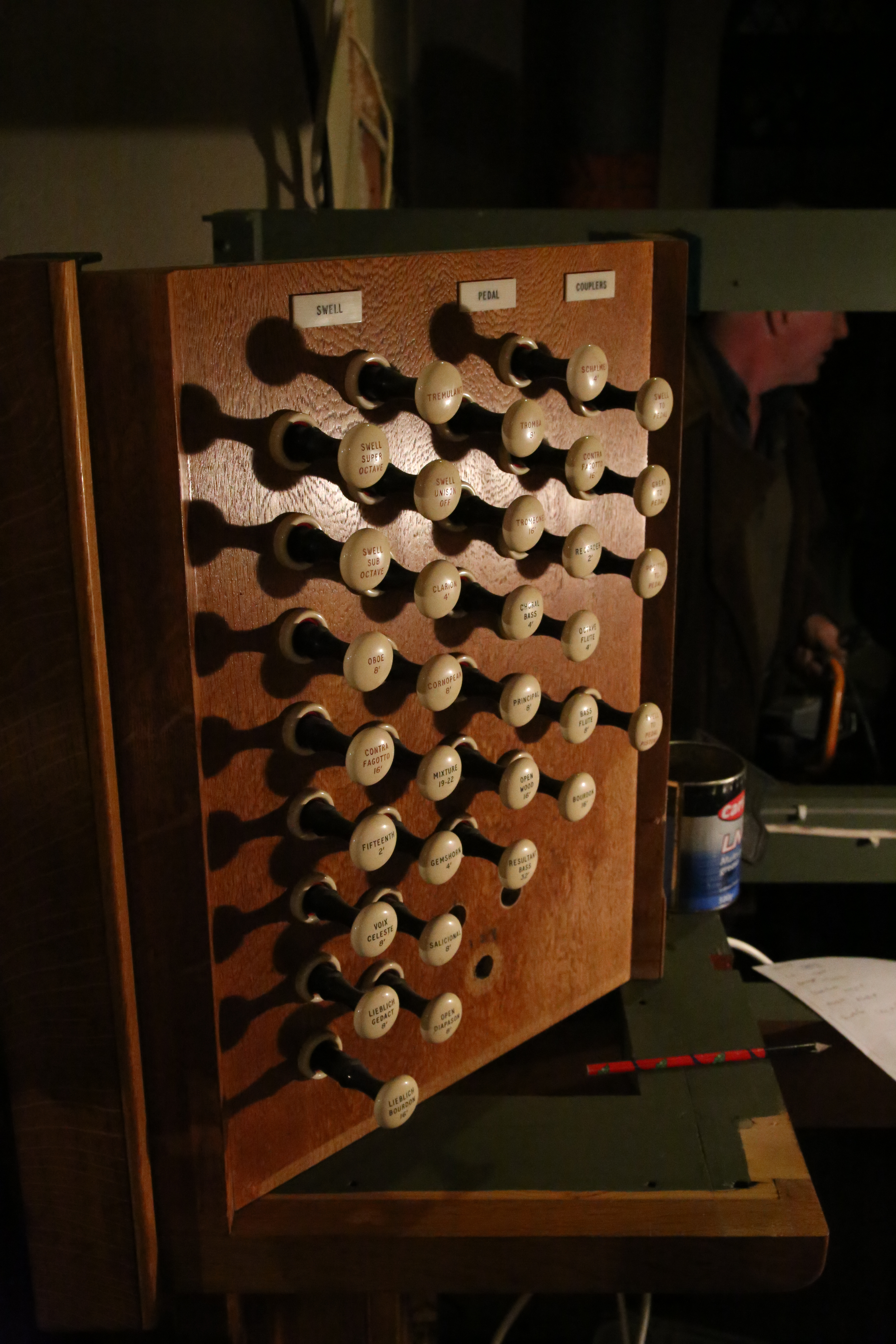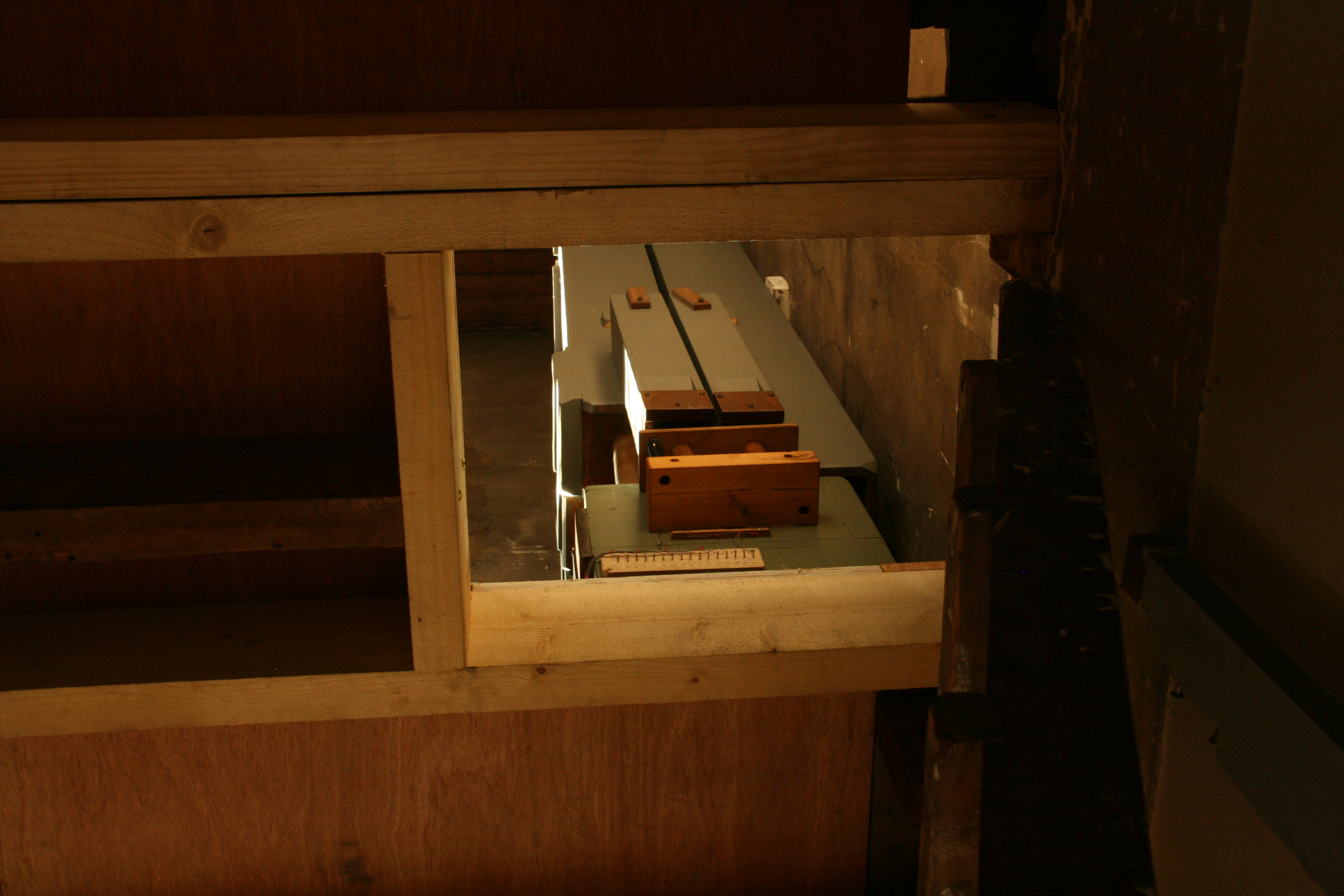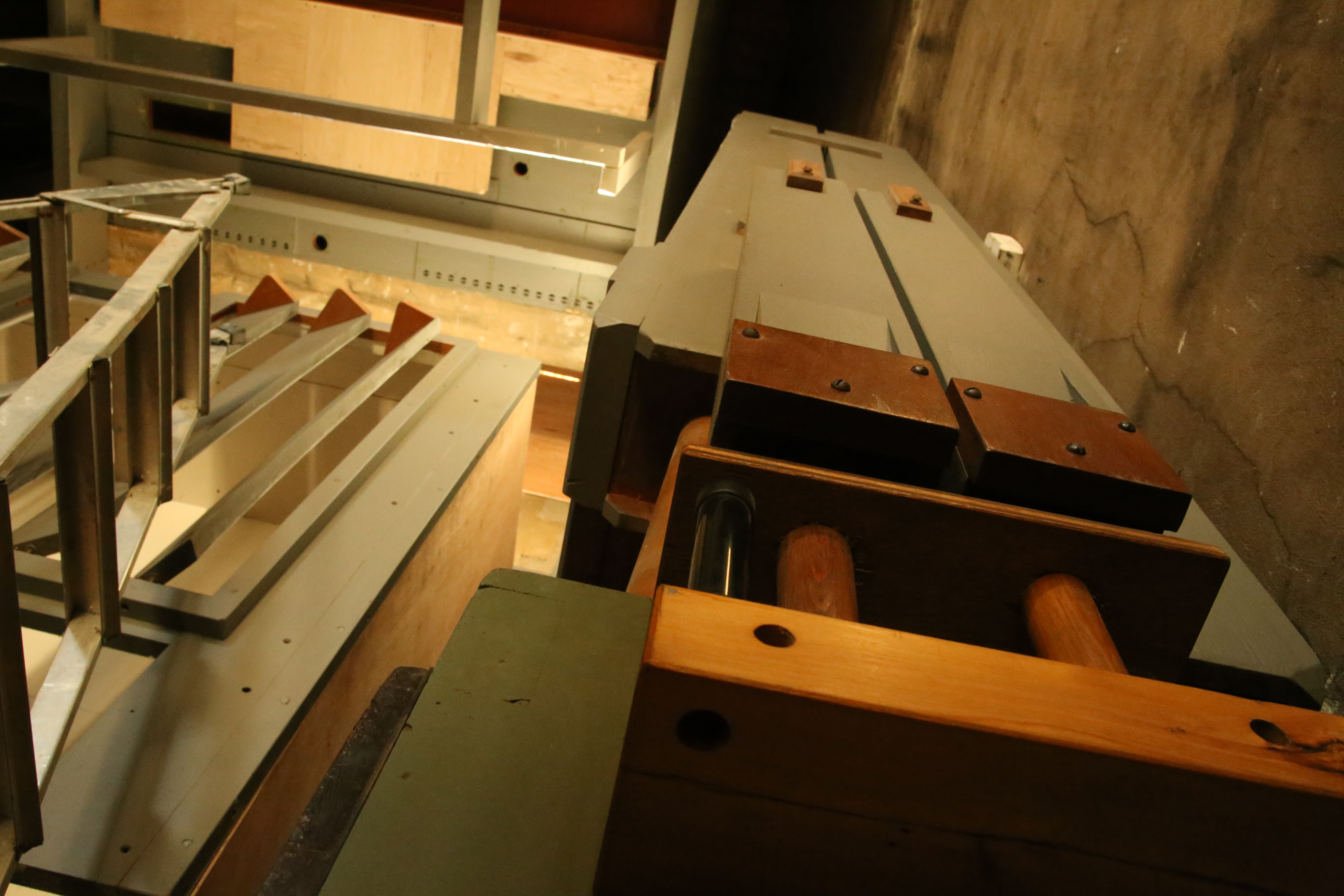 The windchests, reservoirs/bellows etc. are supported by a building frame, designed to fit the new layout of the organ into the chamber at St Michael’s. The action has also been revised and updated, with new solid-state circuitry also allowing the provision of couplers and other helpful accessories.