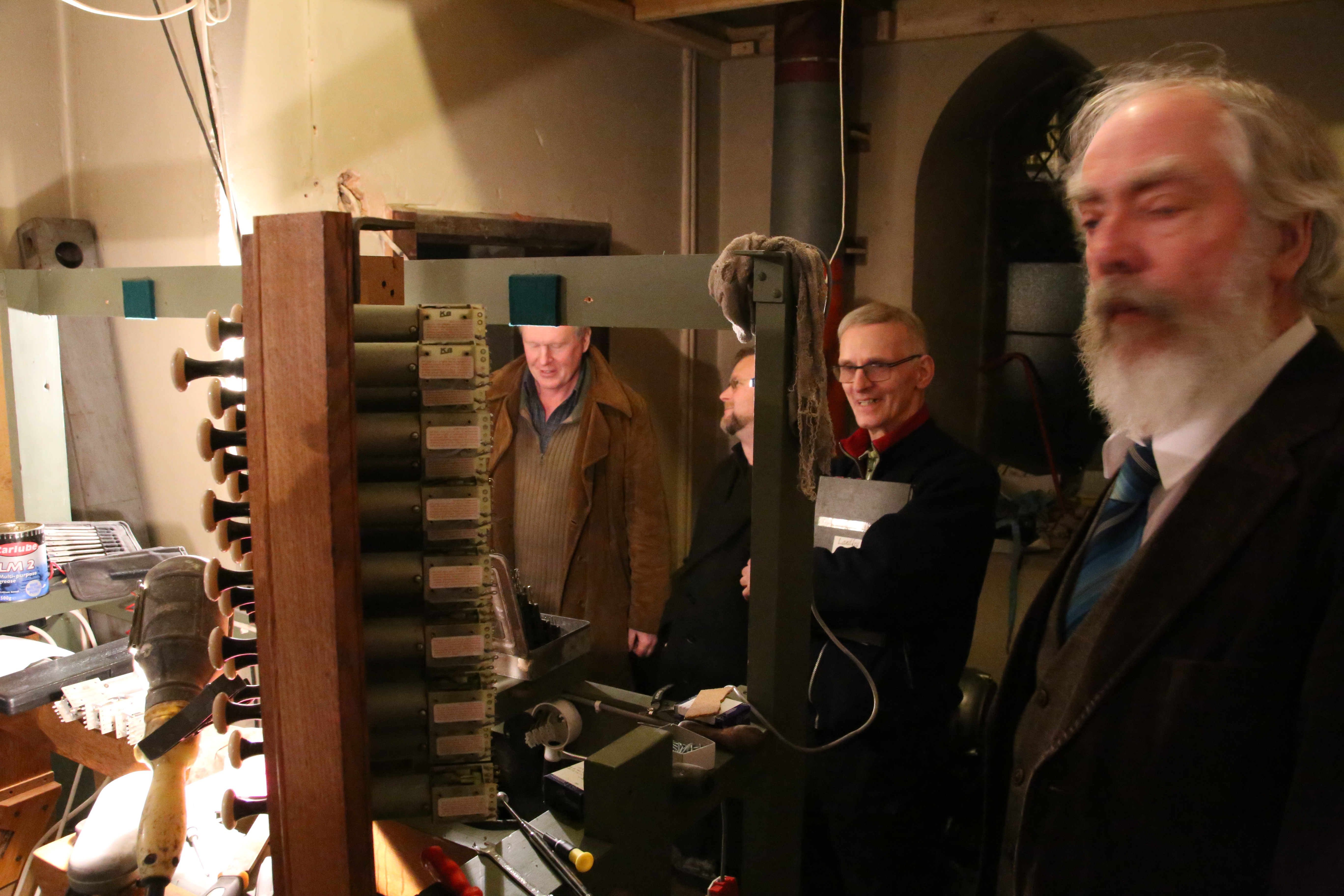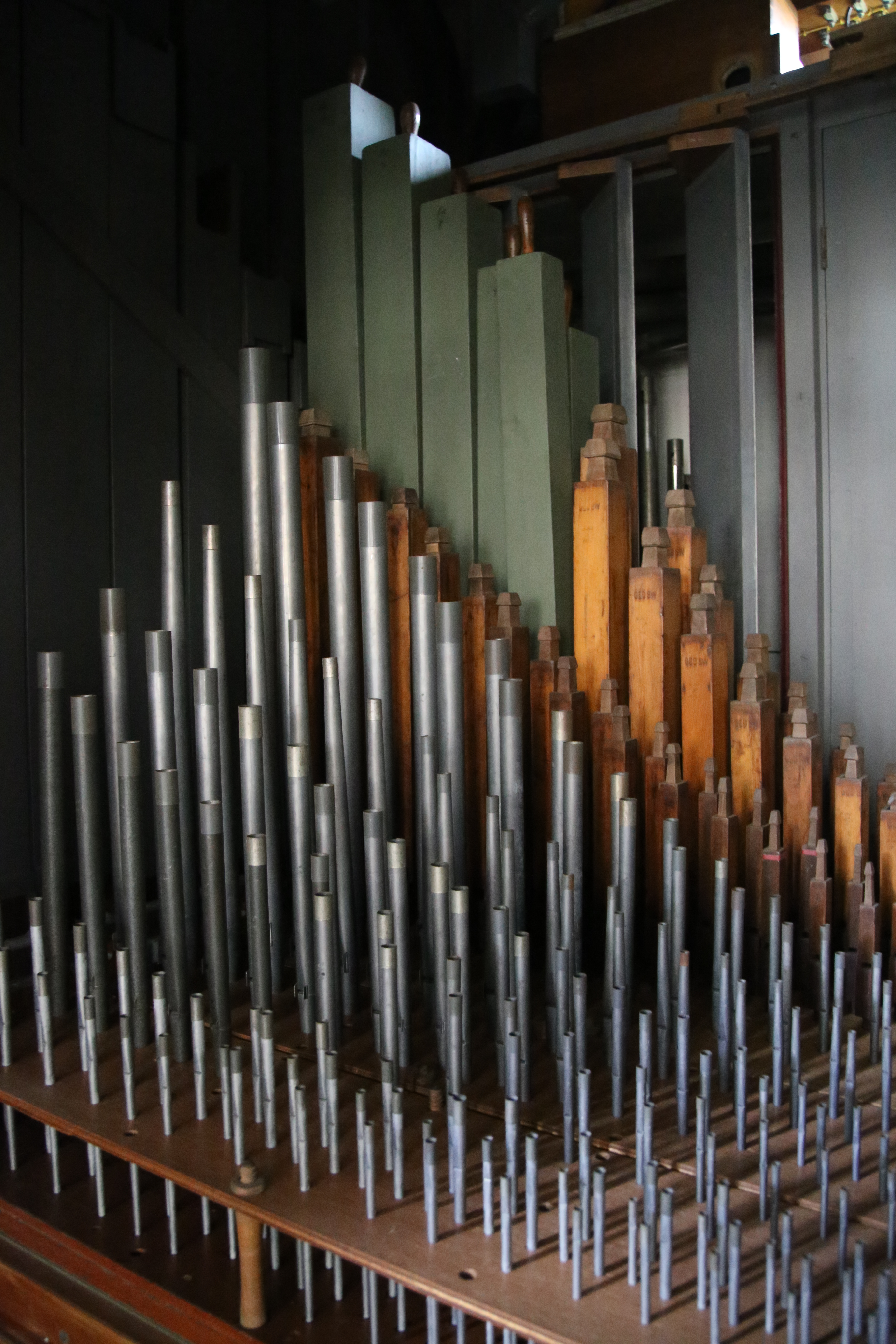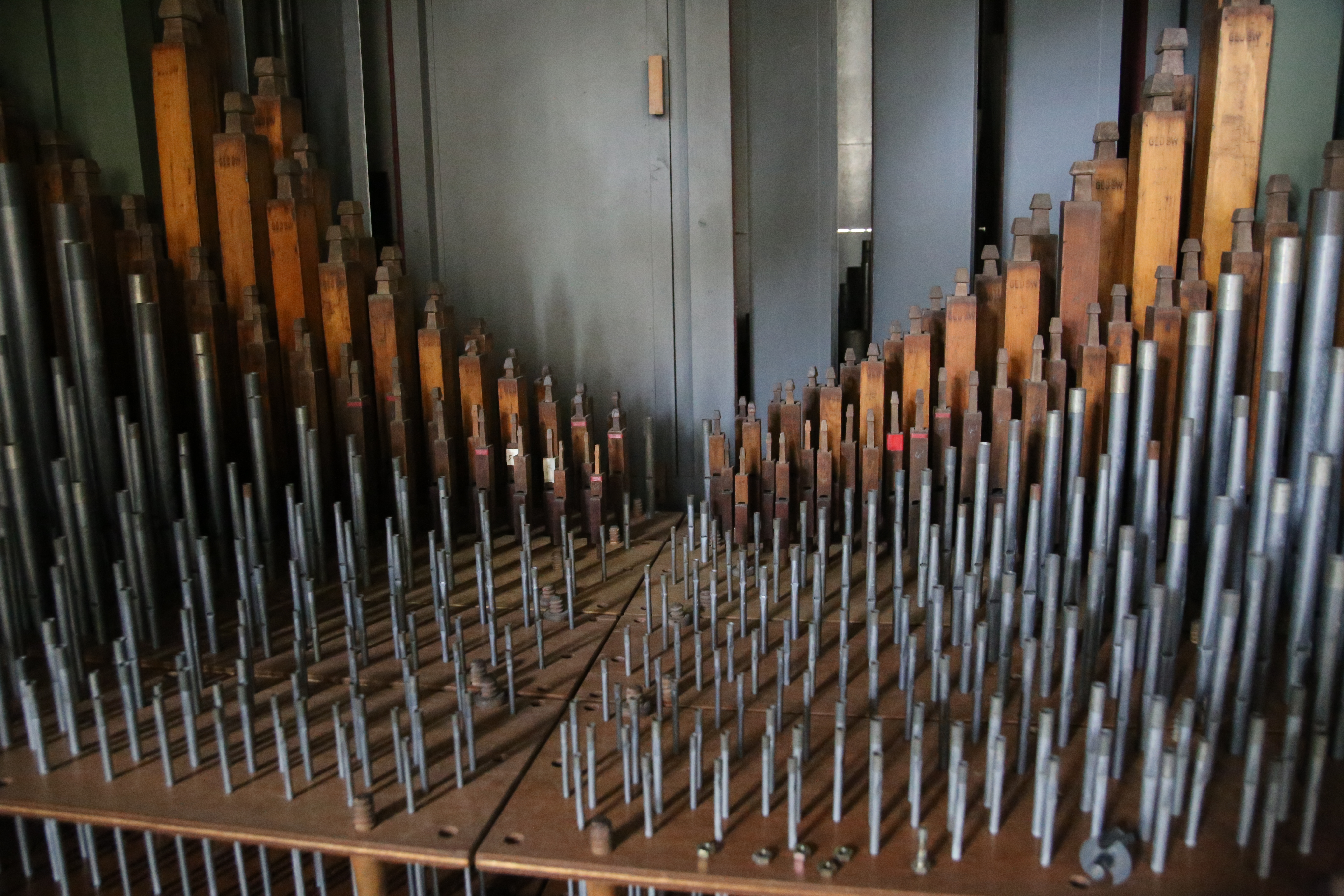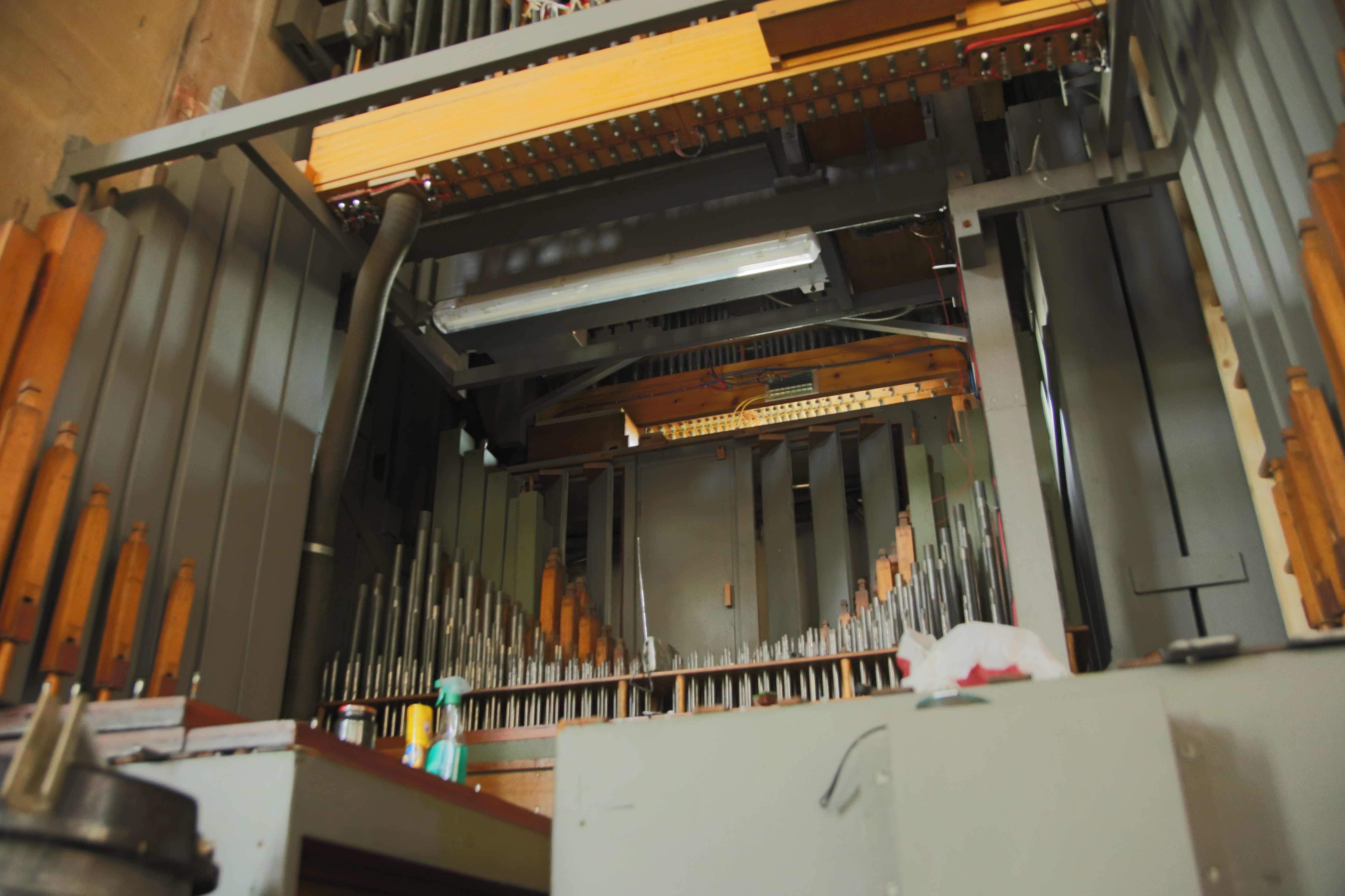 The windchests, reservoirs/bellows etc. are supported by a building frame, designed to fit the new layout of the organ into the chamber at St Michael’s. The action has also been revised and updated, with new solid-state circuitry also allowing the provision of couplers and other helpful accessories.