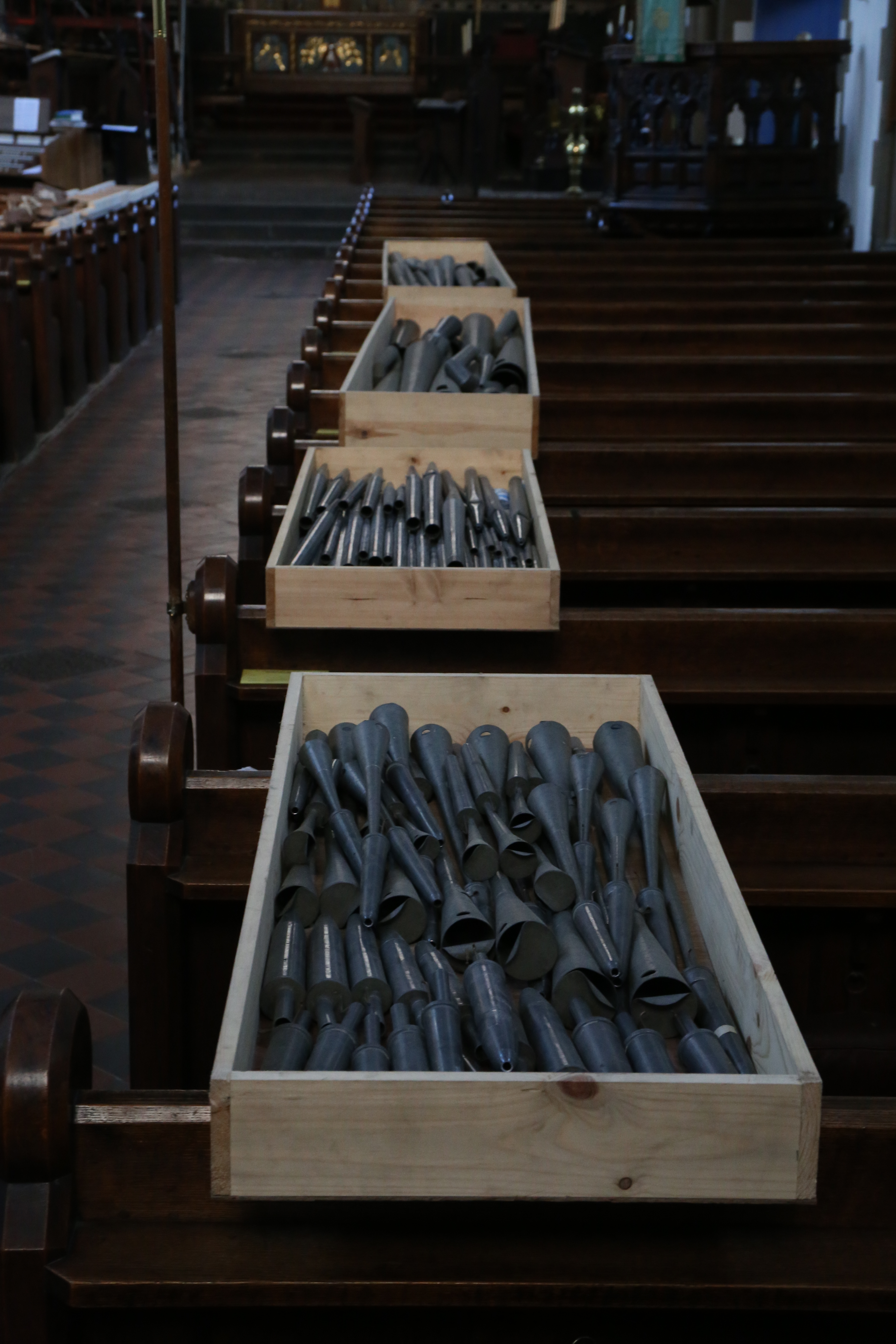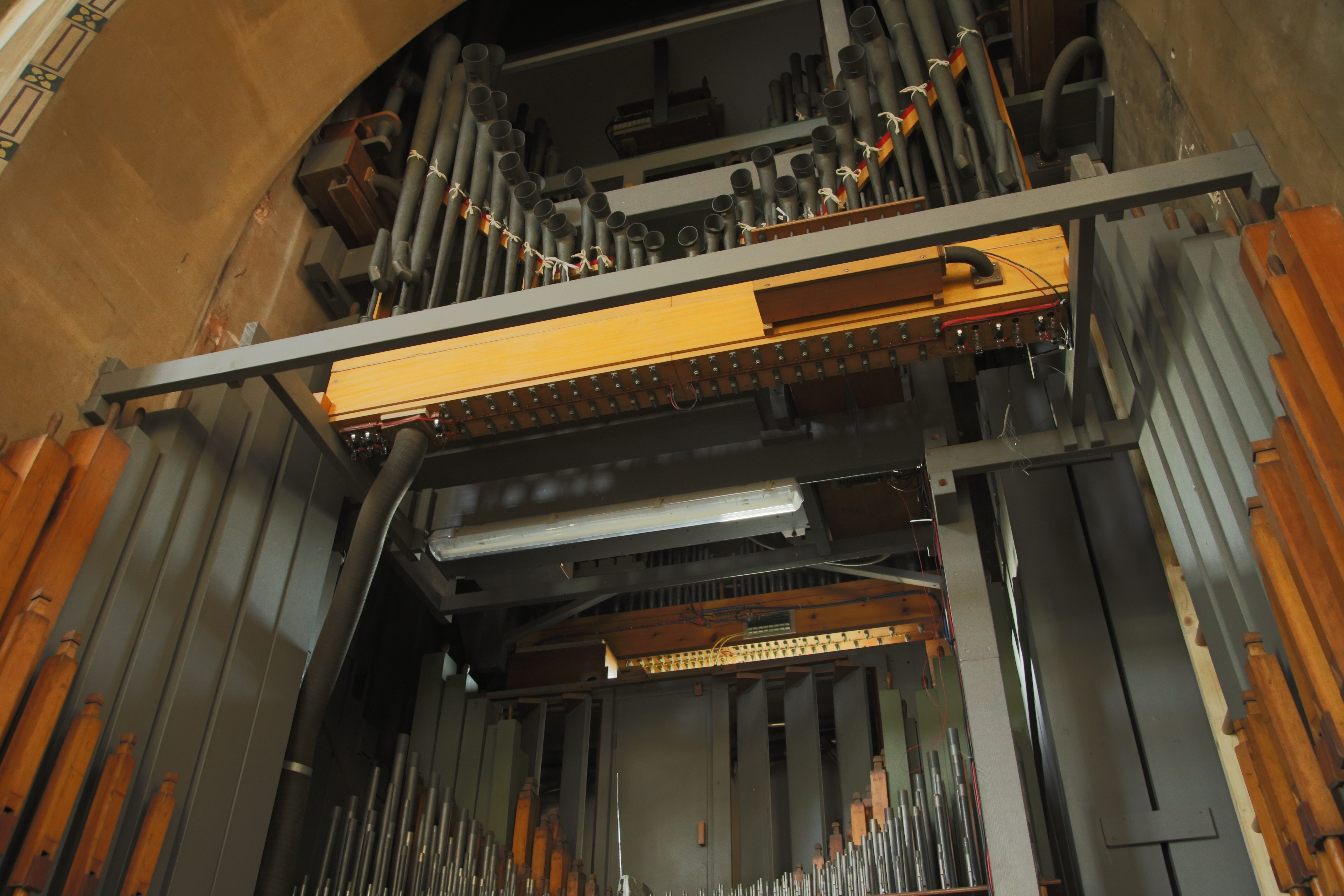 Dr Nigel Browne describes some of the features of the new organ; The organ consists of five main sections: Great, Swell, Positive, Solo and Pedal. The pipes of the first four are mainly accommodated on large windchests, one for each department, with some small ancillary windchests for particular ranks of pipes. The Pedal department, comprising larger pipes, has separate wind supplies.