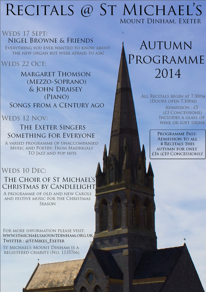 Doors: 7.10, for 7.30. Tickets: £5/£3.50, available on the door; season tickets also available. Tickets may be booked in advance from http://stmichaelsrecitals.ticketsource.co.uk/events