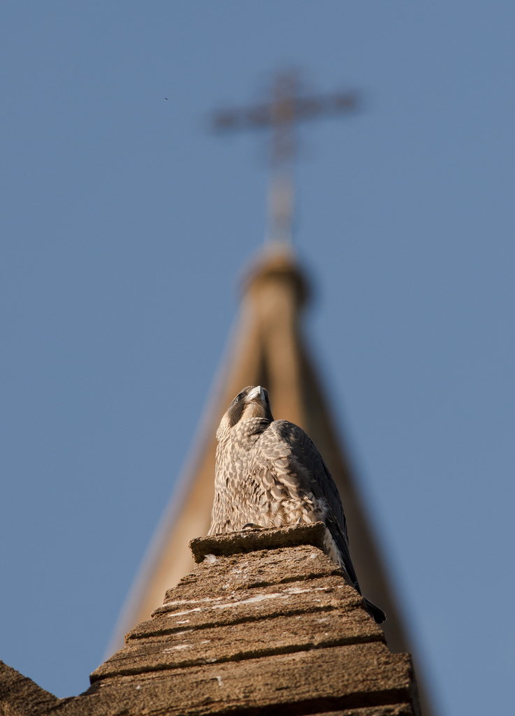 These remarkable images evoke the story of Peregrines at St Michael’s, including the ringing of the chicks and the installation of the webcam and cables, high inside the spire.