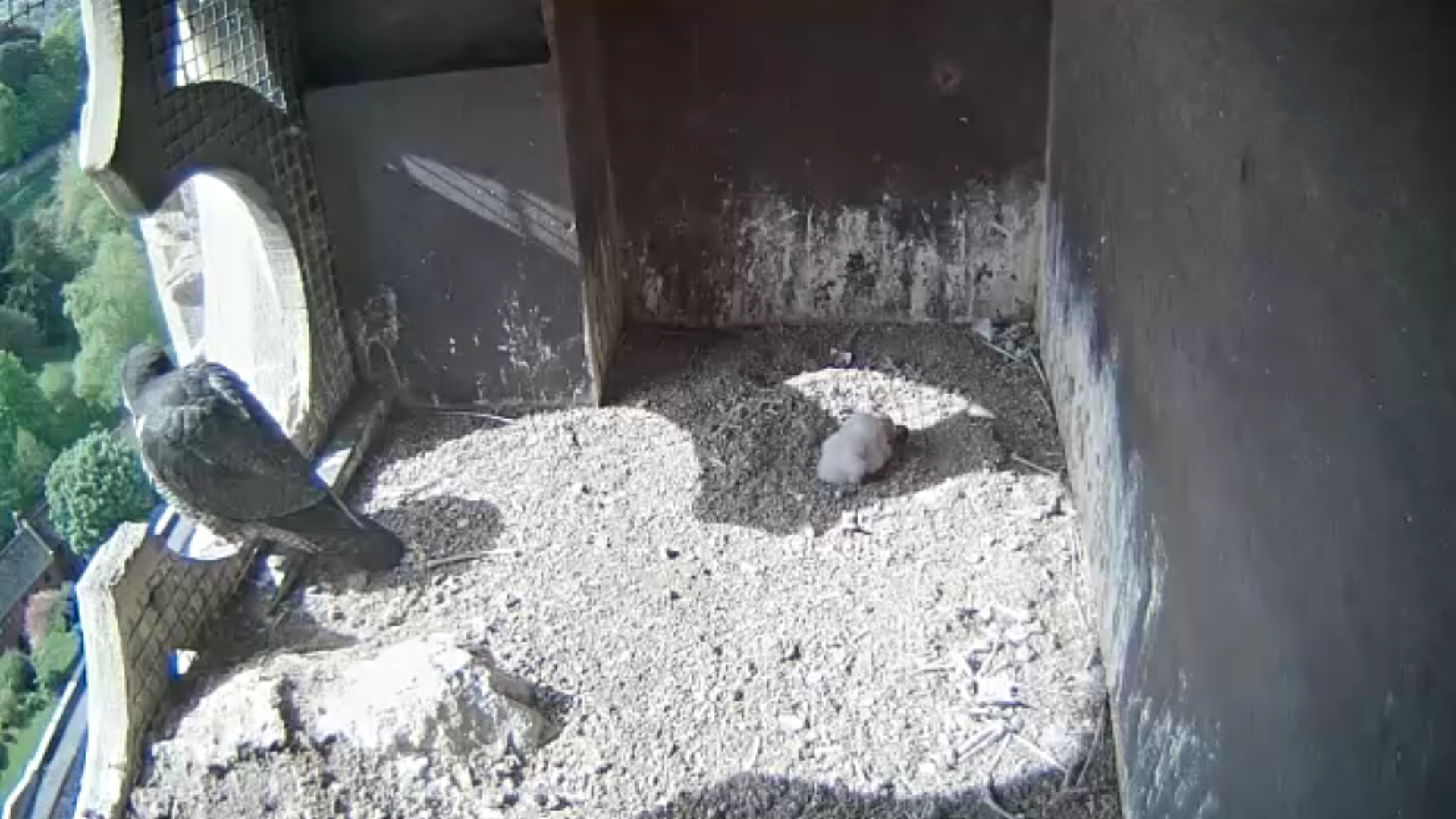 Our adults. believed to be a 12 year old female and possibly 16 year old male, are raising their 9th brood together in 2018, though Peregrine Falcons have been breeding on St Michael’s Church since 1997 and this year’s chick are the 58th & 59th at the site over the years.